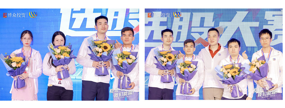 下一項(xiàng)則是選股大賽頒獎儀式,首先頒發(fā)的是銅獎獲得者,他們是陳紅董、梁世昌、黃建強(qiáng)、容偉彪、宋文皓、韋蘭忠、程琪、明振友、鄒小翠,由易米的劉總為9為獲獎?wù)哌M(jìn)行頒獎以及合影留念。緊接著頒發(fā)銀牌獲獎?wù)撸麄兪牵宏悹N、陳威、張偉秋、勞志炳、謝俊。繼續(xù)由易米的劉總為4位獲獎?wù)哌M(jìn)行頒獎以及合影留念。
